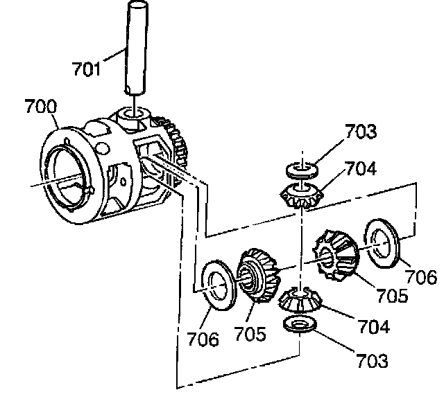 5. Install the differential pinion shaft (701) into the differential carrier housing.