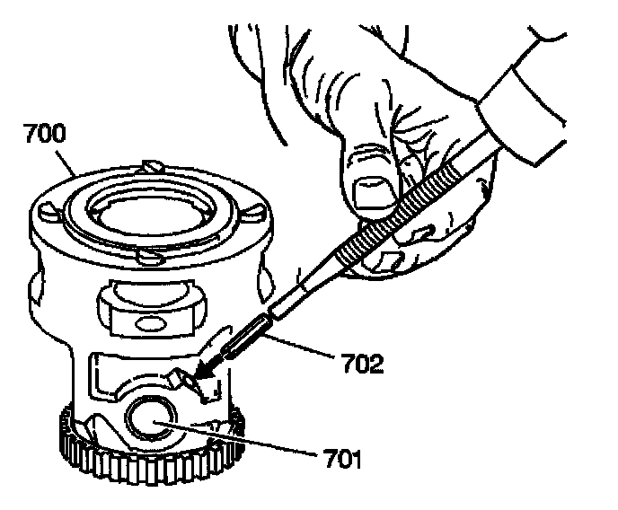 6. Align the hole in the pinion gear shaft (701) to the hole in the differential carrier housing (700).