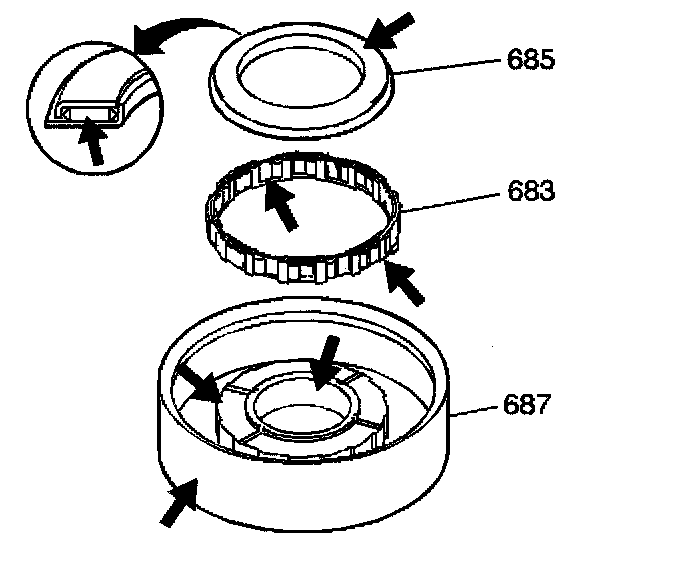 3. Install the thrust bearing (685) onto the 1-2 support drum (687). Press down with hand pressure only.