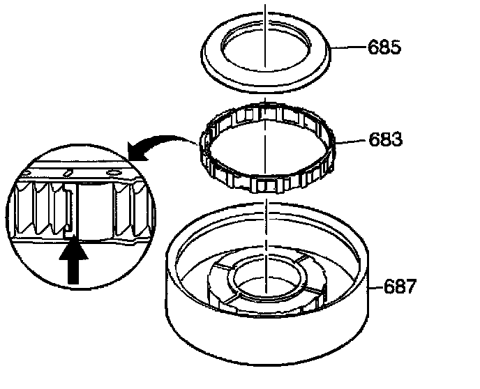 ^ A scored or burned contact surface for the manual 2-1 band on the 1-2 support drum (687)