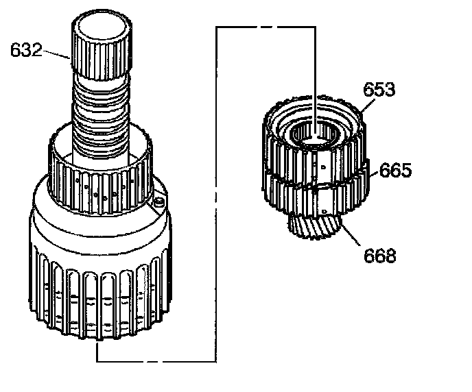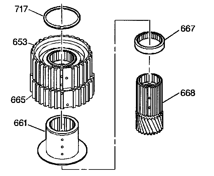 4. Remove the input and third clutch sprag inner race (661) and the input sun gear spacer (667) from the input sun gear (668).