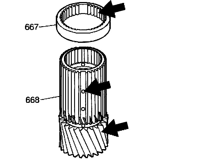 5. Inspect the input sun gear spacer (667) for the following: