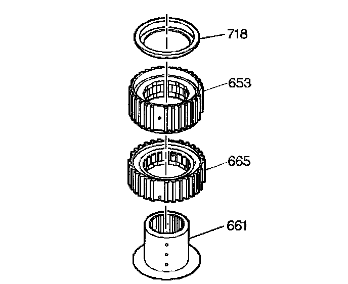 16. Install the 3rd clutch sprag outer race retainer (718) onto the third clutch sprag outer race (653).