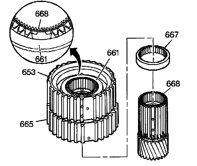 18. Assemble the input sun gear spacer (667) onto the input sun gear (668).