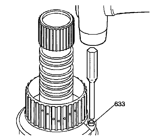 Important: Perform this procedure only if the inspection or leak check procedure indicated a problem.Use a 6.25 mm (1/4 inch) drift and mallet in order to remove the ball check valve assembly (633) from the input clutch housing.
