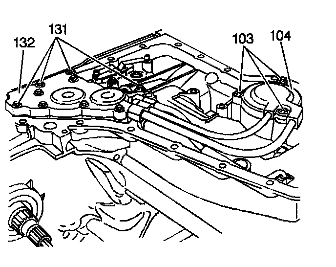 1. Remove the four indicated accumulator cover bolts (131) from the 1-2 and 2-3 accumulator cover (132).