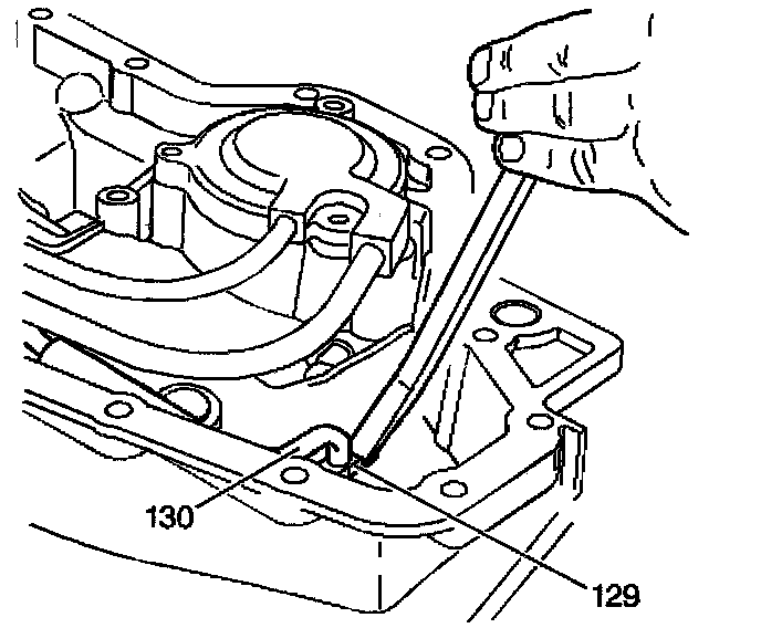 3. Use a large screwdriver in order to gently pry the lube oil pipe retainer (129) from the case.