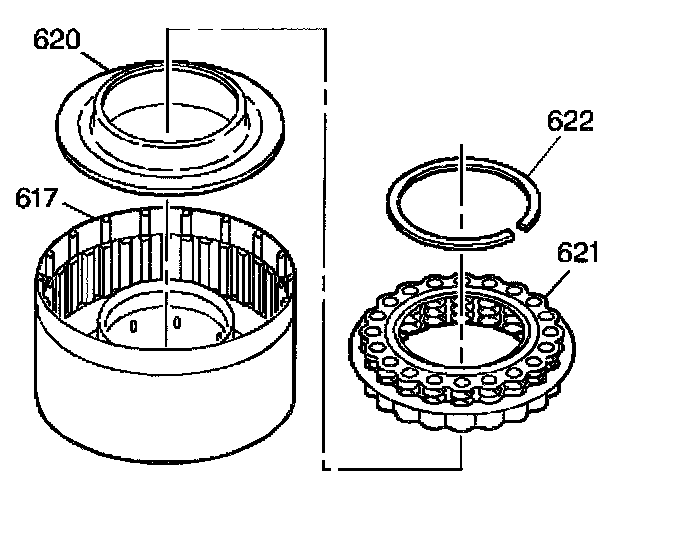 2. Remove the second clutch backing plate (626). Remove the alternating second clutch fiber plates (624). Remove the second clutch steel plates (625).