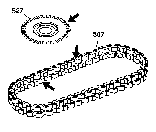 5. Assemble the drive (516) and driven (506) sprockets into the drive link assembly (507) according to one of the following criteria: