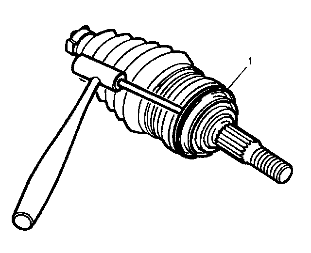 2. Remove the deflector ring (1) from CV joint outer race with a brass drift and a hammer. Discard the deflector ring (1).