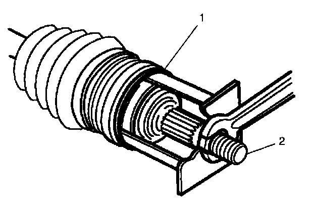 ^ Tighten the nut until the deflector bottoms against shoulder of CV outer race using a fabricated tool.