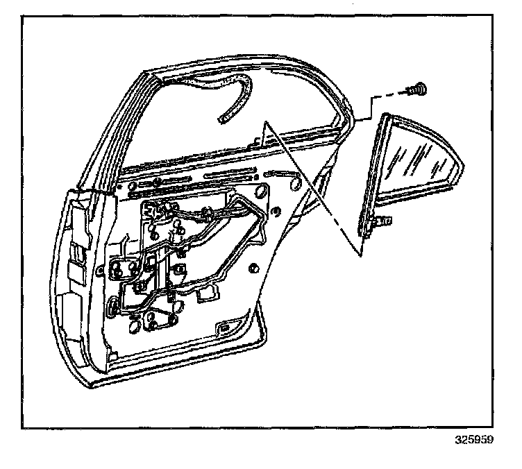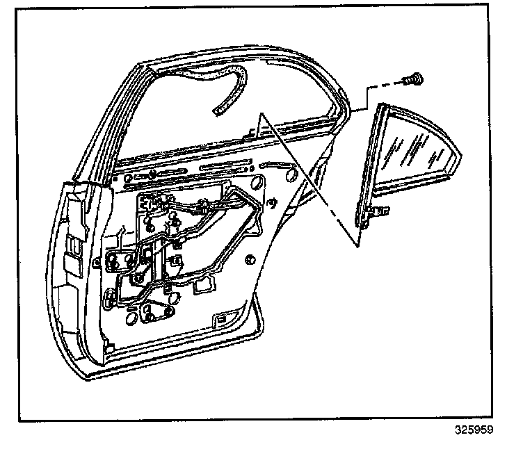 12. Rotate the window foreword and remove it from the rear door.