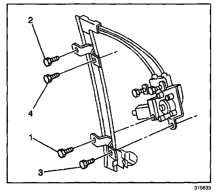 IMPORTANT: In order to ensure proper orientation of the window regulator to the door, tighten the window regulator bolts in the specified sequence (1,2,3,4).