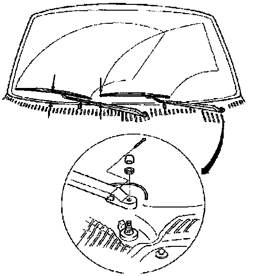 6. Remove the nut from the wiper arm and the wiper transmission drive shaft.