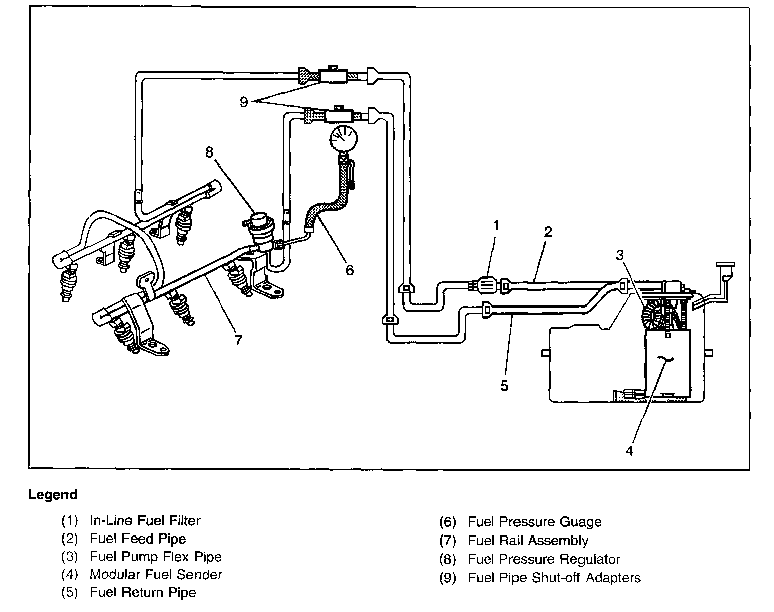 3. A fuel system that drops more than 5 psi in 10 minutes has a leak in one or more of the following areas: