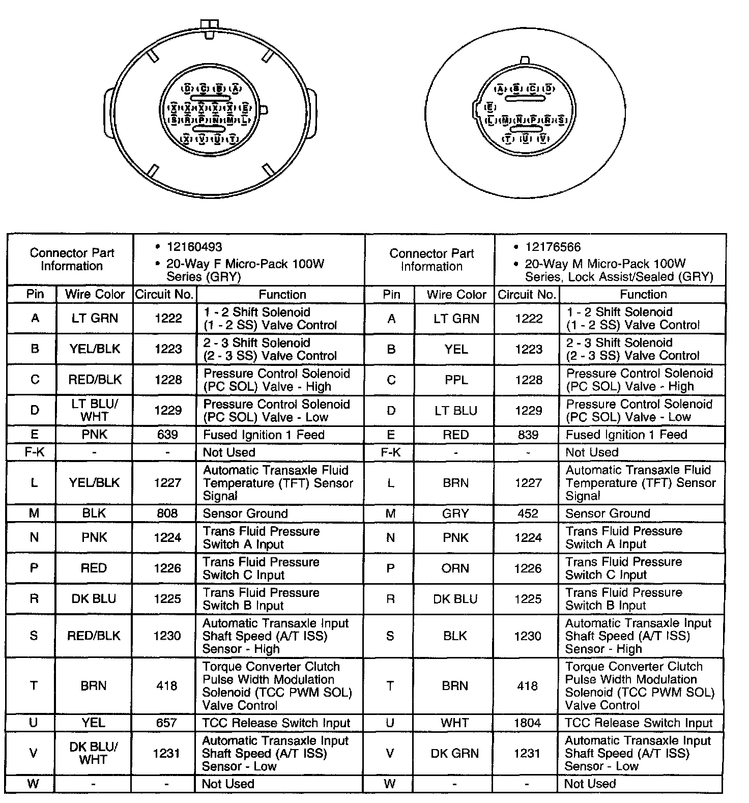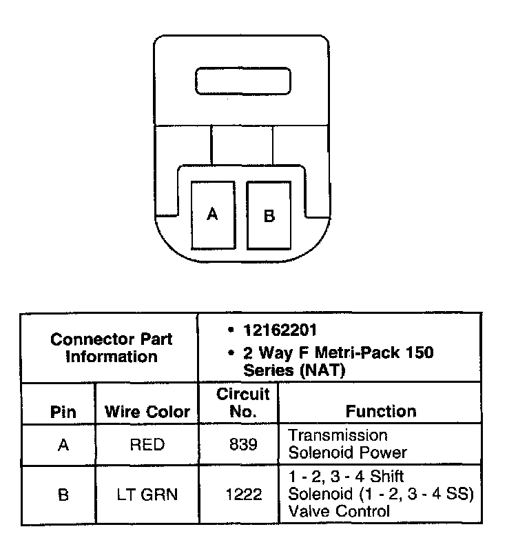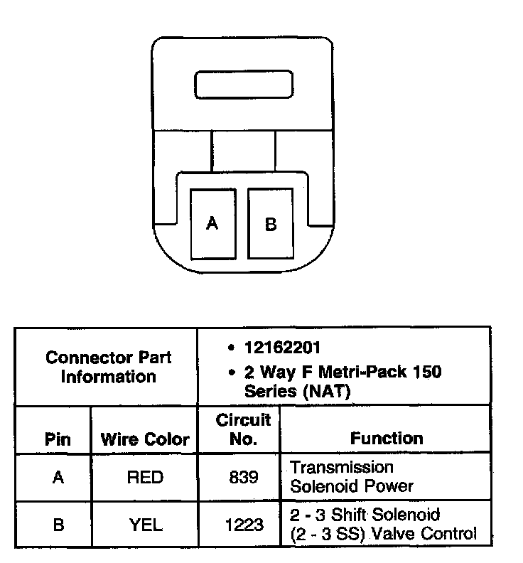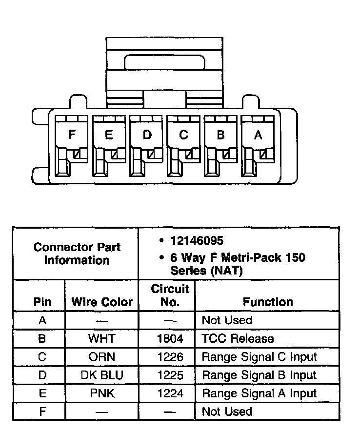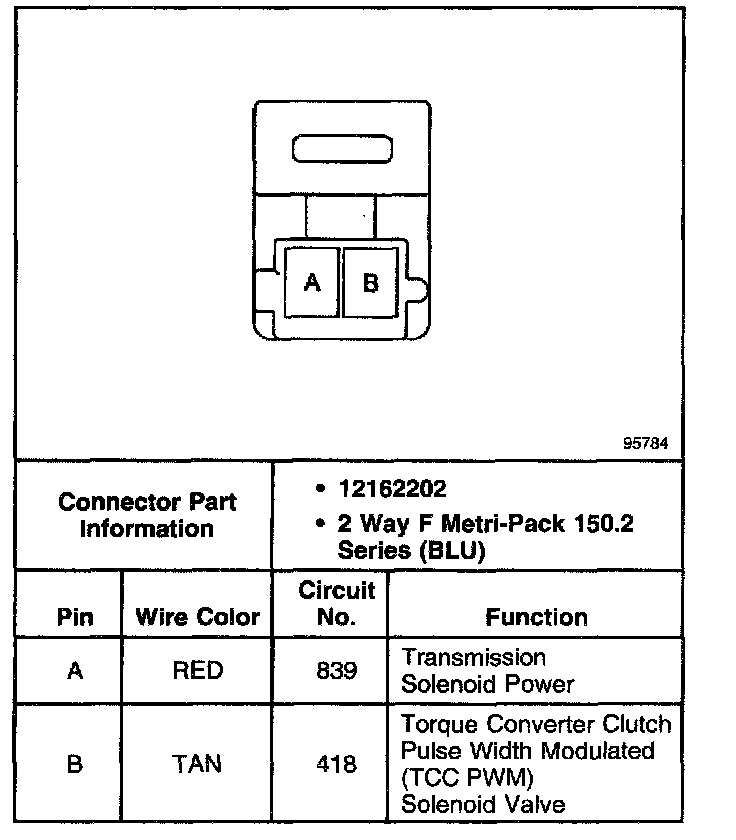 Torque Converter Clutch Pulse Width Modulated (TCC PWM) Solenoid Valve Connector, Wiring Harness Side