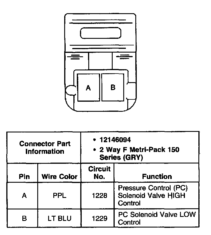Pressure Control (PC) Solenoid Valve Connector, Wiring Harness Side