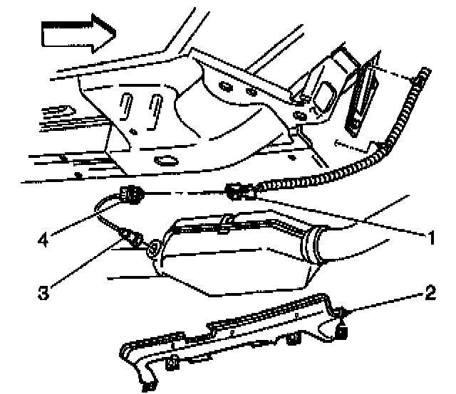 3. Disconnect the HO2S electrical connector (1) retaining tab from the HO2S electrical connector (4).