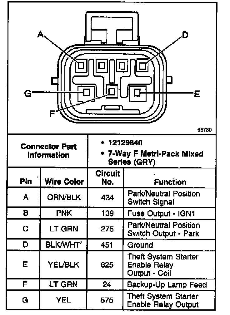 Park/Neutral Position (PNP) Switch Connector C1: