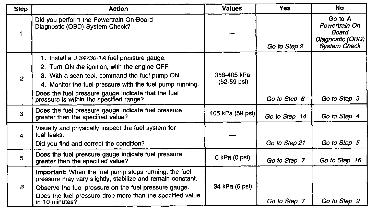 2. Tests the fuel systems ability to achieve a specific fuel pressure range. It may be necessary to cycle the fuel pump several times to achieve the pressure range.