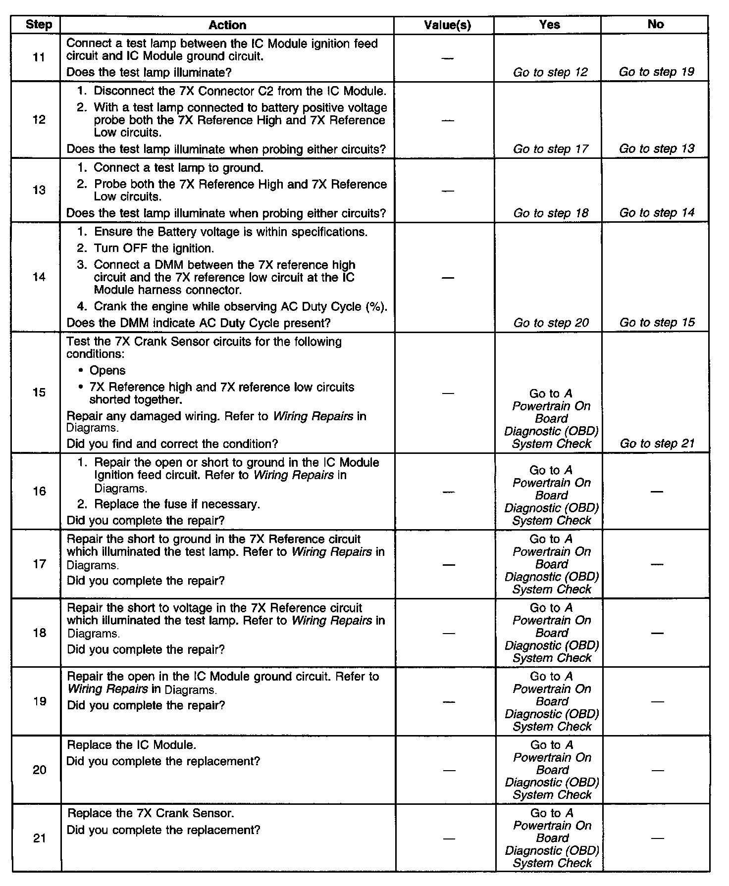 Refer to Engine Controls Schematic Camshaft and Crankshaft Position Sensor.Diagnostic Chart (Part 1 Of 2):