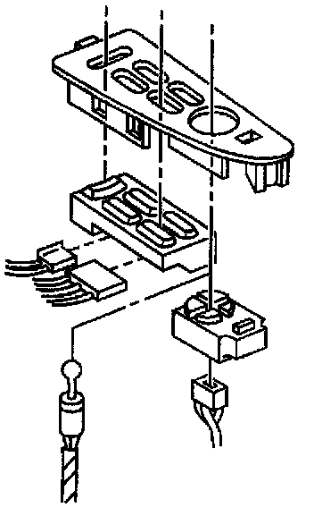 ^ When removing a door trim panel or switch plate, the ignition switch must be in the OFF position. This will eliminate the possibility of shorting out the switch if a flat-bladed tool, awl or metal object is used to remove the switch from the harness.