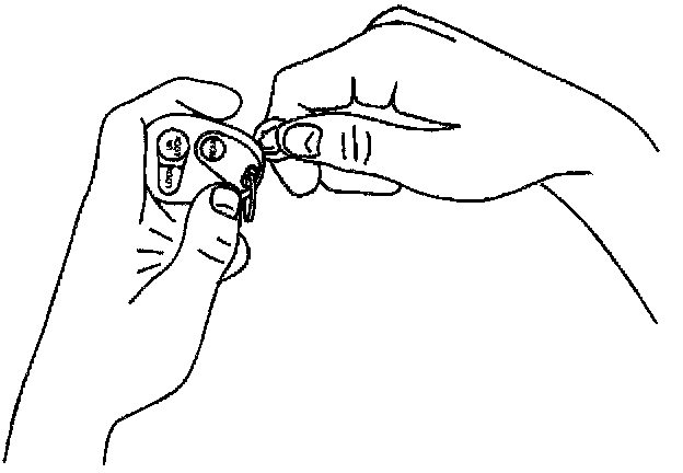 REMOVAL PROCEDURE1. Insert a small coin between the two halves of the transmitter case at the slot provided near the key ring hole.