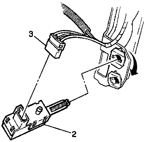 1. Insert the release switch (2) into the retainer until the switch is fully seated against the brake pedal arm.