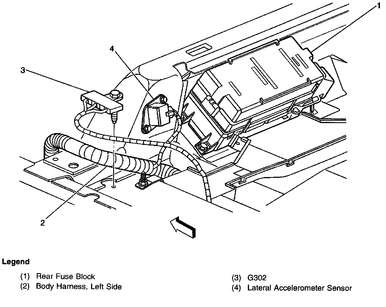 On the left side of the rear passenger compartment, under the rear seat