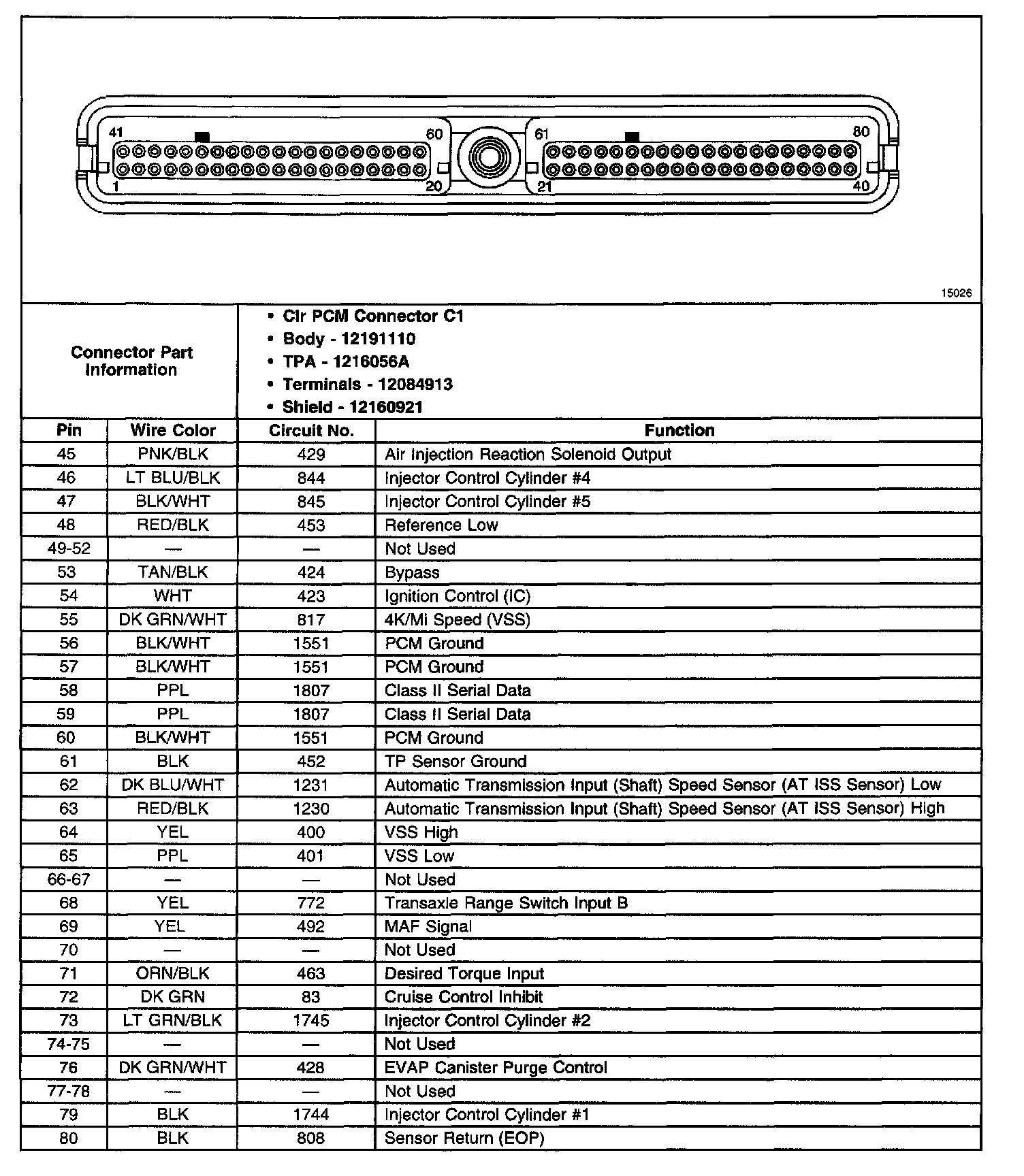 PCM 80-Way Blue Connector C1 Details (Part 2 Of 2):