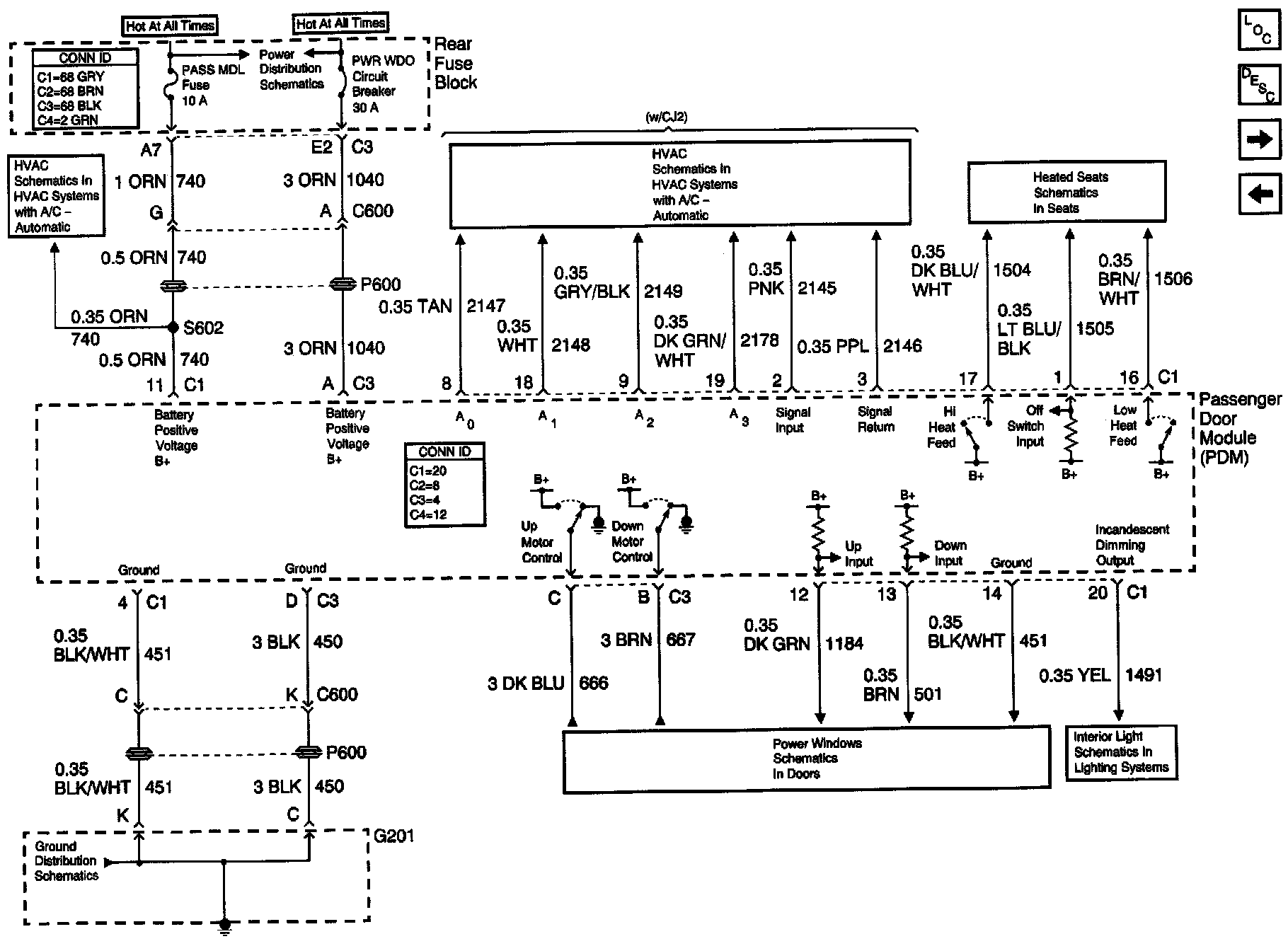 Door Control Module Schematics: Passenger Door Module (PDM) Power And Ground: