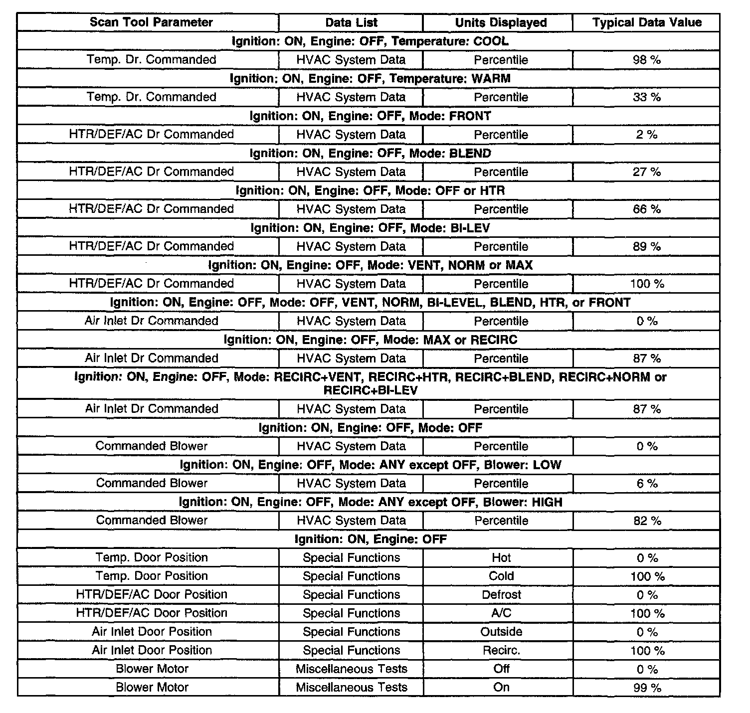 Scan Tool Data List - Climate Control Panel (CCP)