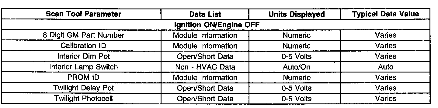Scan Tool Data List - Climate Control Panel (CCP)