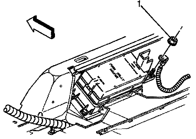 3. Remove the positive battery cable nut (1) and cable from the rear fuse block.