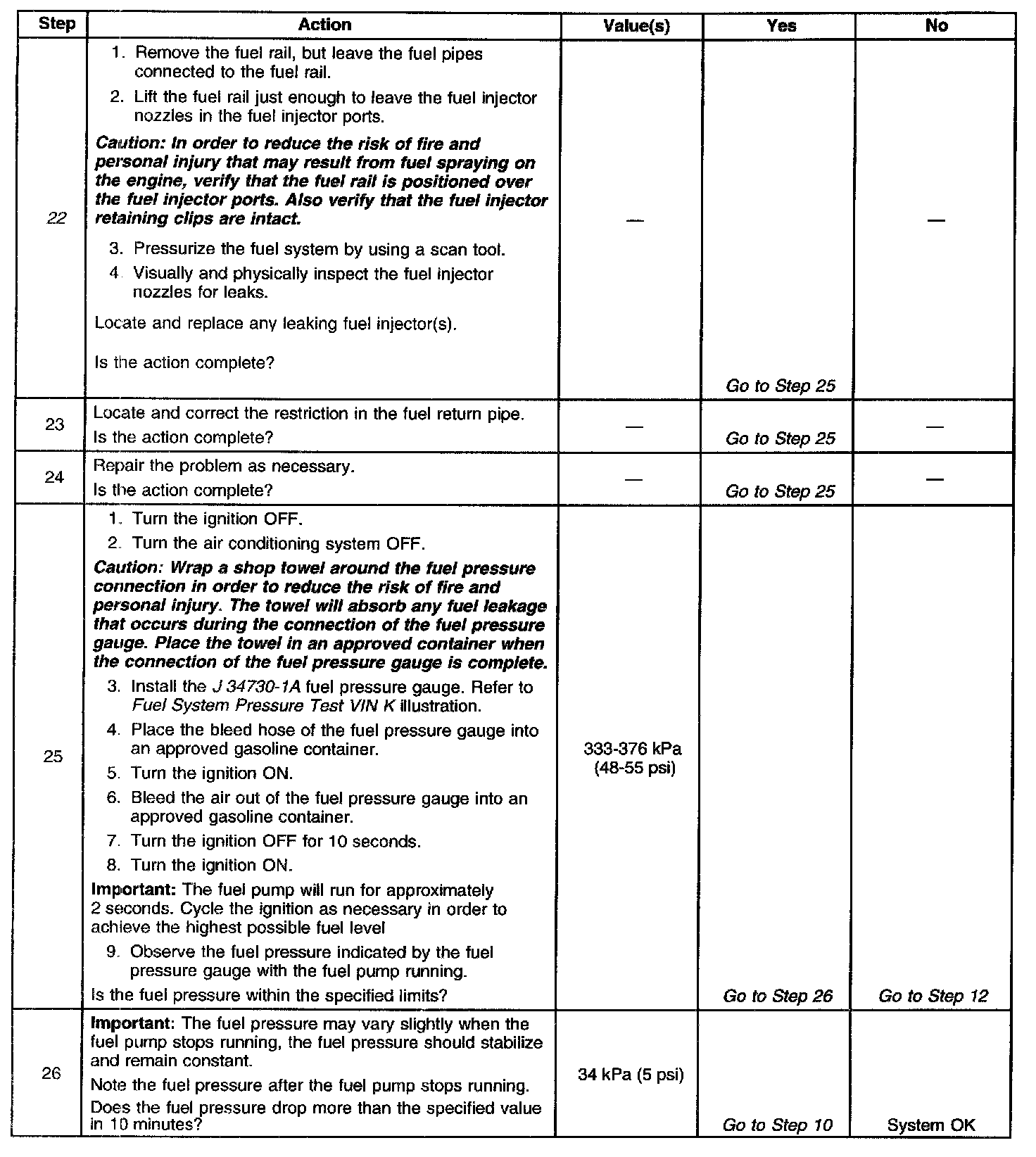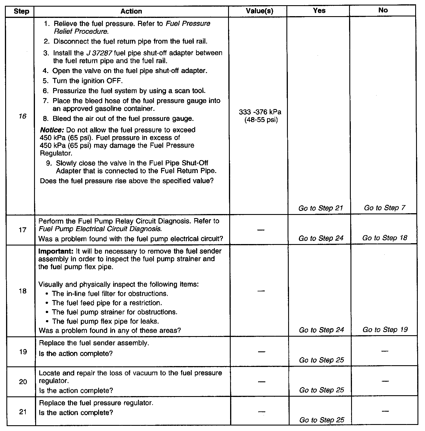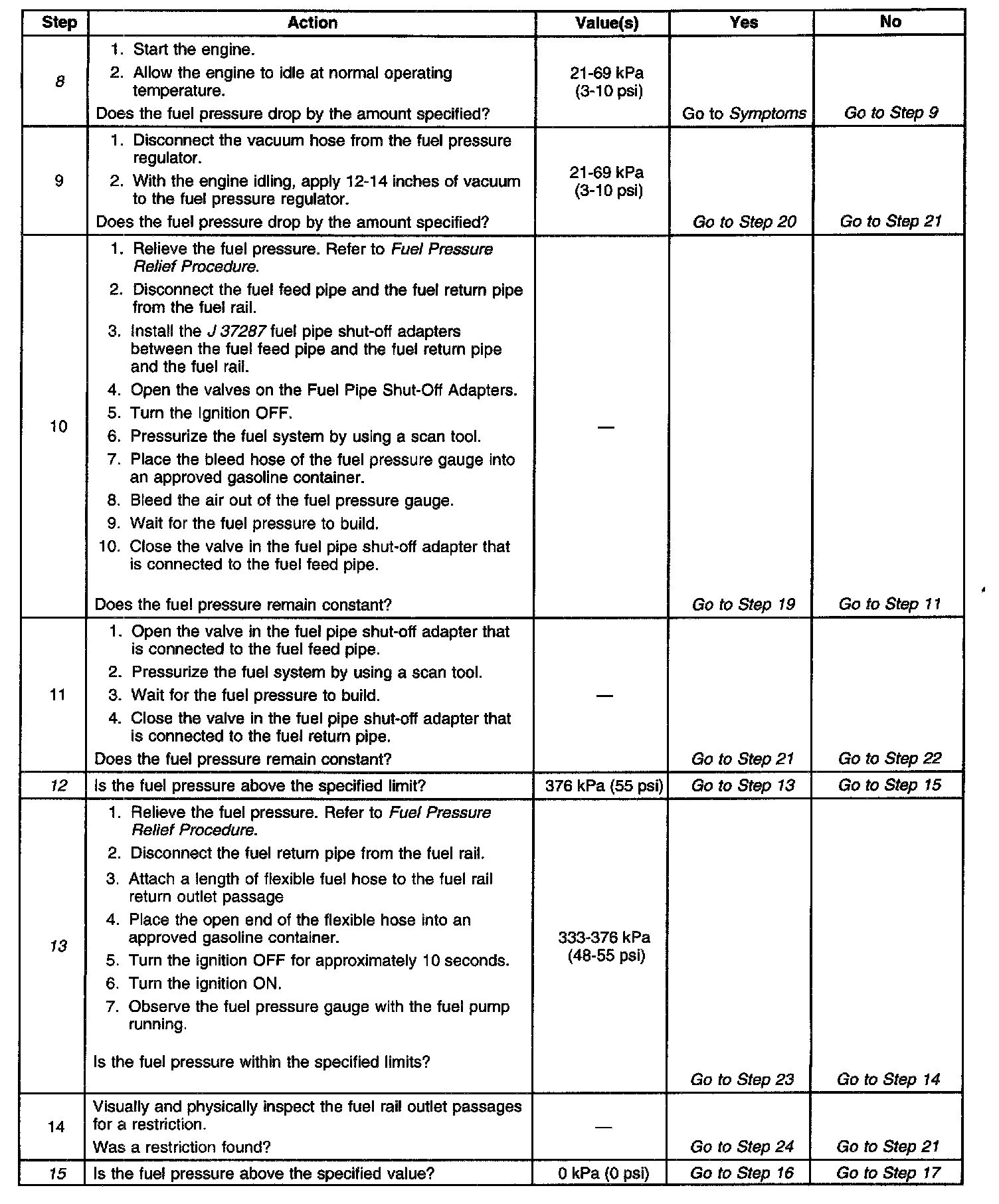 13. This test determines if the high fuel pressure is due to a restricted fuel return pipe or if the high fuel pressure is due to a faulty fuel pressure regulator.
