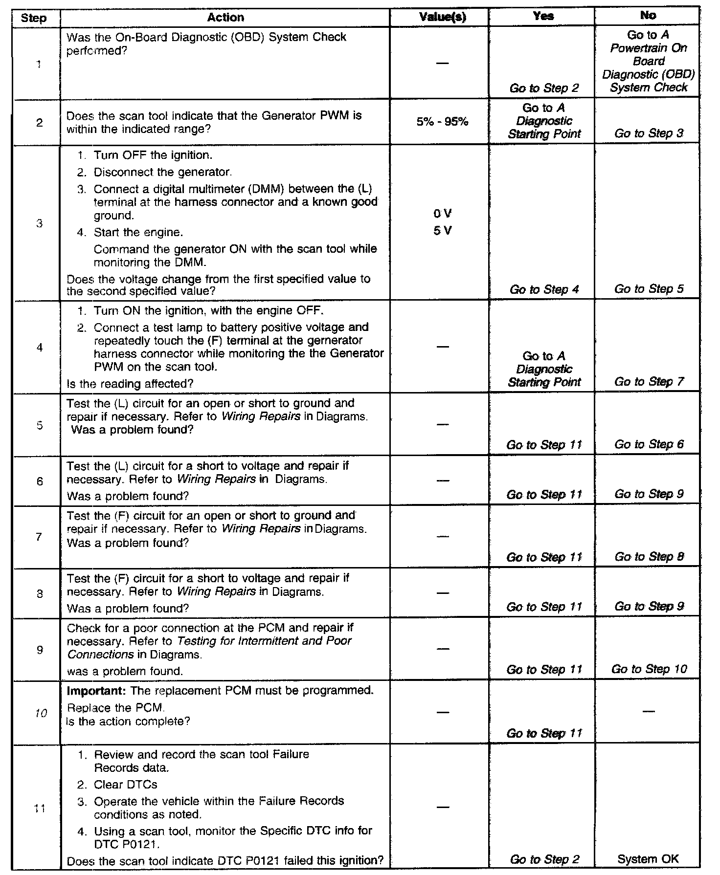 ^ A poor connection at the PCM or the generator.
