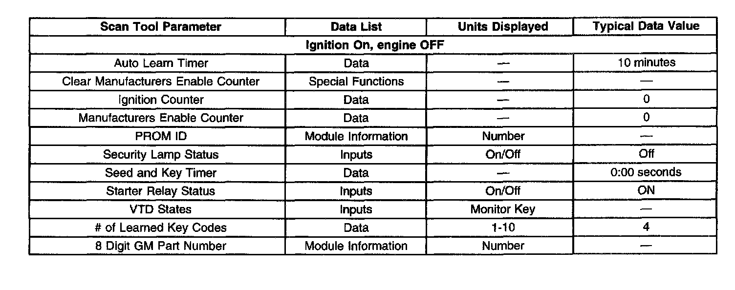 Scan Tool Data List - Antitheft System