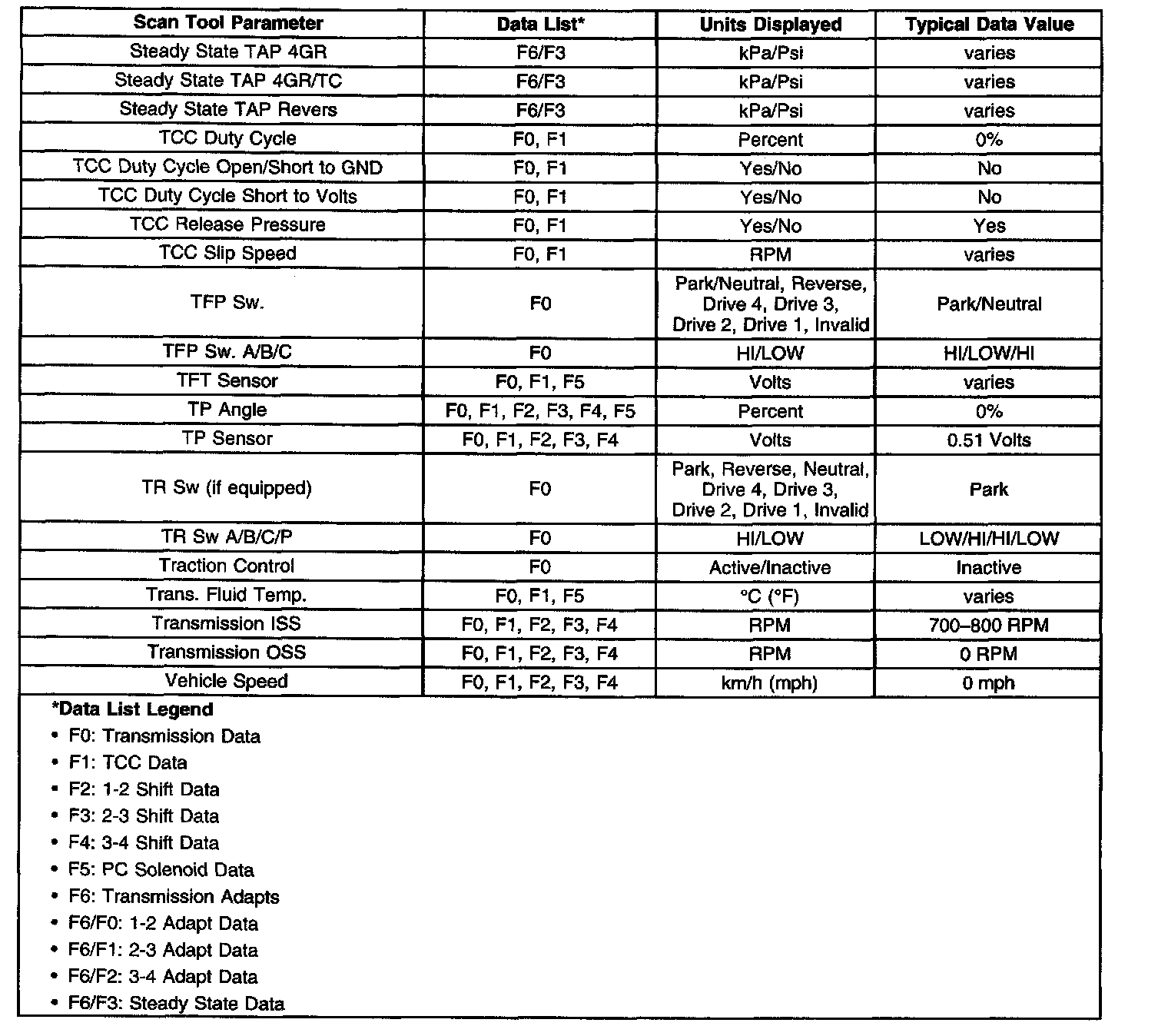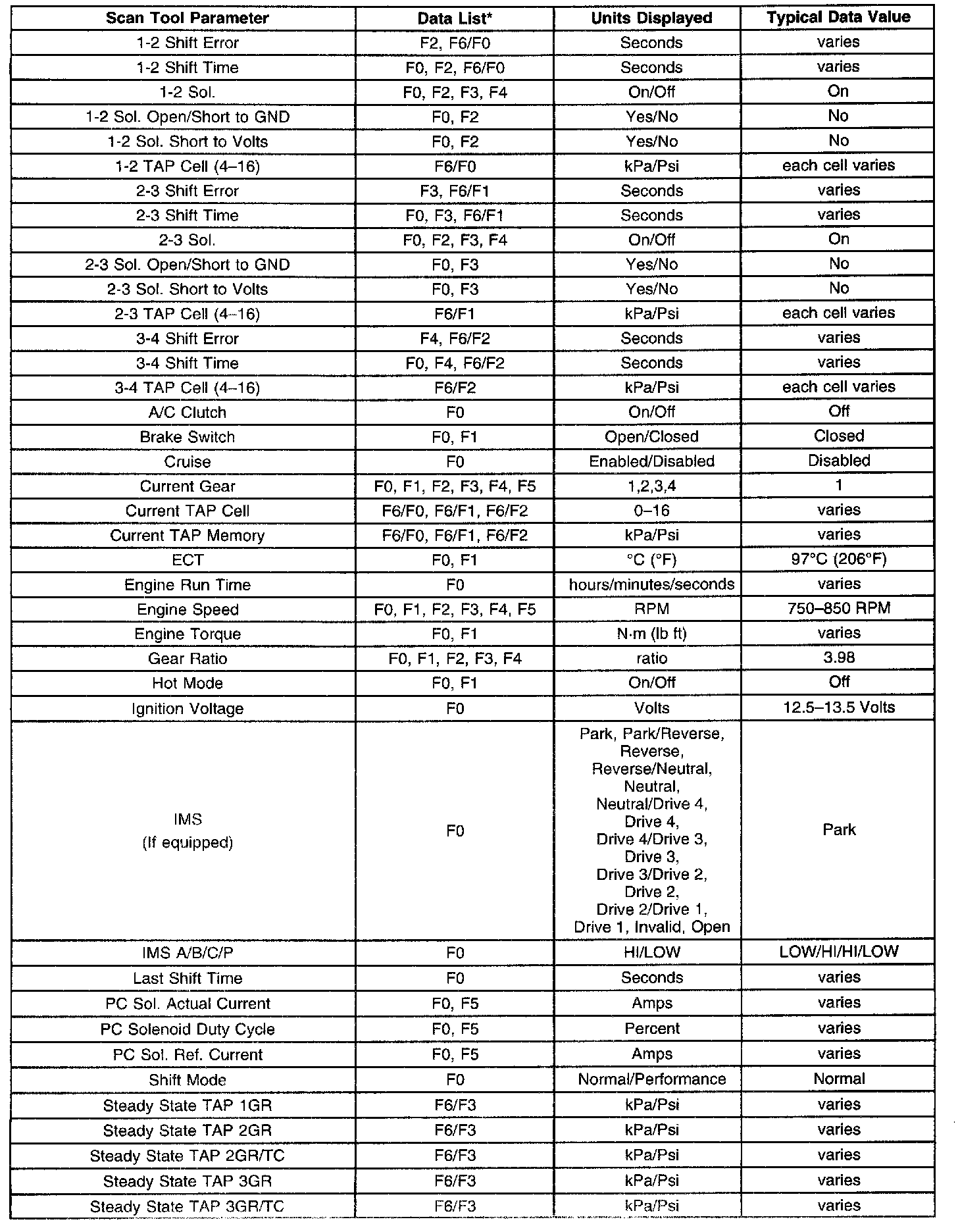 Only the parameters listed below are used for diagnosing. If a scan tool displays other parameters, the values are not recommended by General Motors for use in diagnosis.