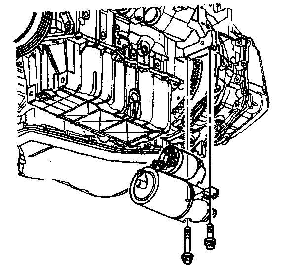 6. Remove the starter motor mounting bolt closest to the oil pan.