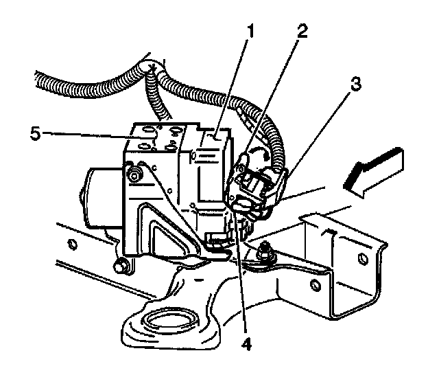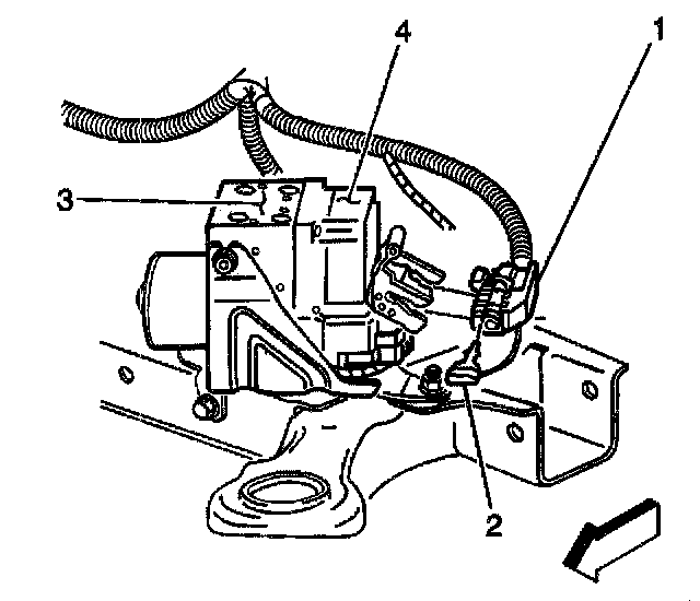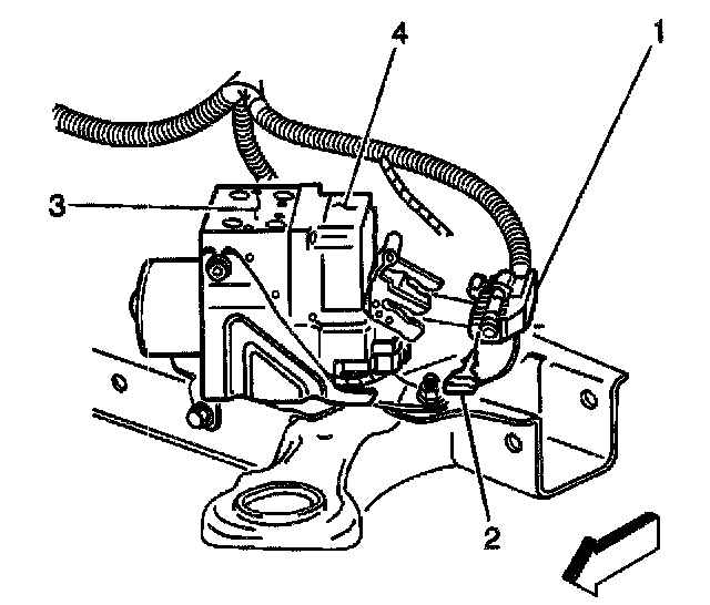 7. Remove the EBCM electrical connector (1) from the EBCM (4).