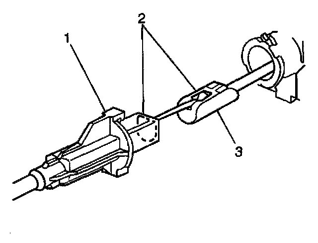 3. Disconnect the cruise control cable (1), and connector (2), from module assembly connector (3).