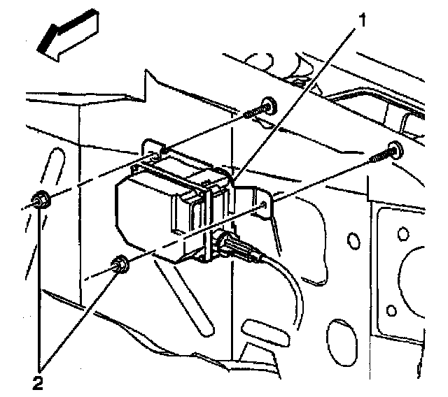 1. Install cruise control module (1) to bracket (2).