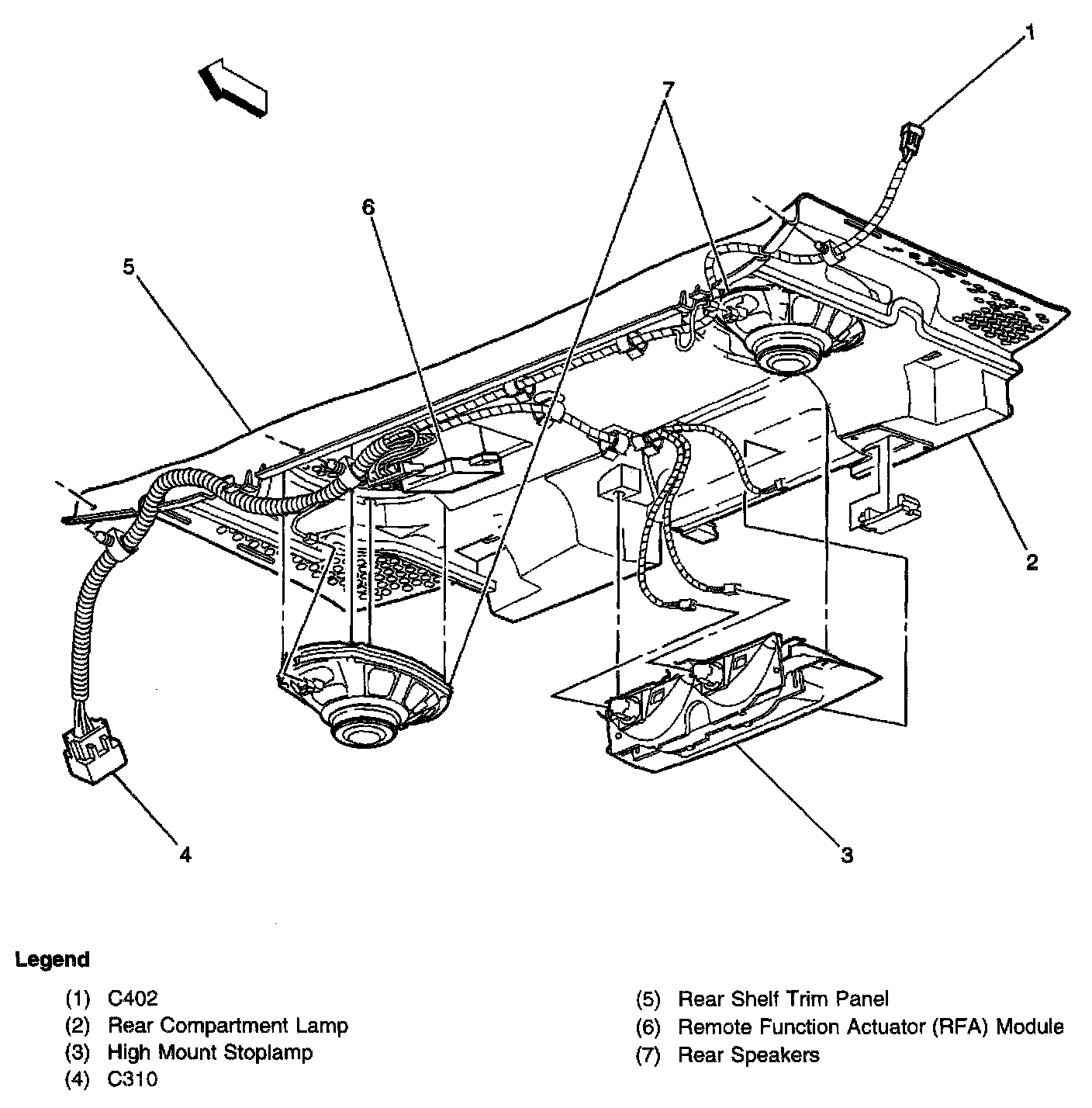 In the center rear of the passenger compartment, under the rear shelf trim panel
