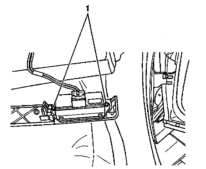 2. Remove the two retaining screws (1) from the passenger control switch and remove.