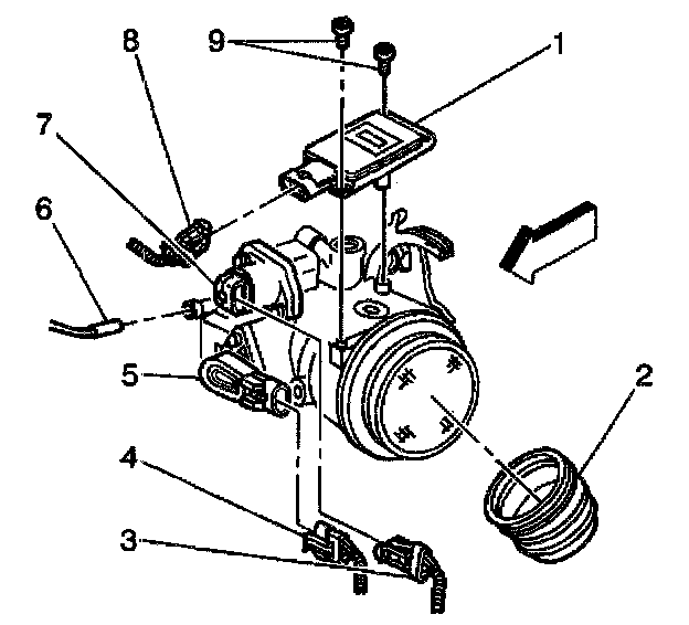 4. Remove the screws (9) holding MAF sensor to throttle body.