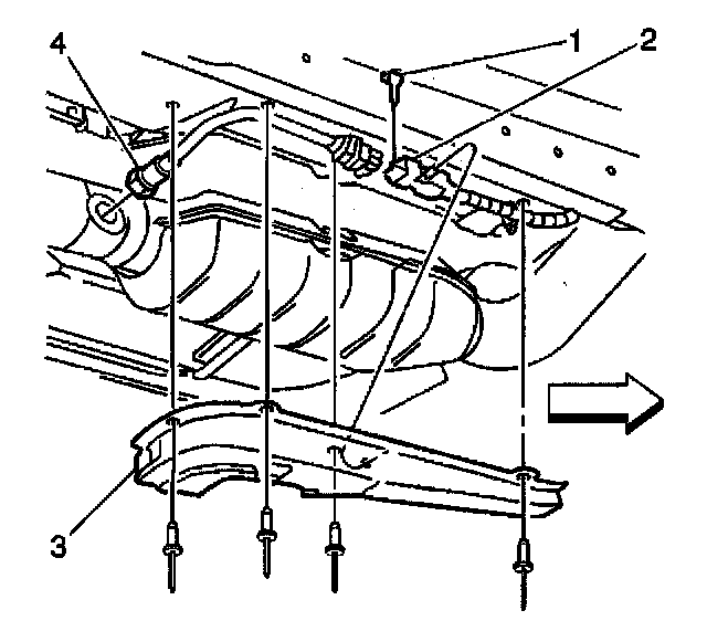 4. Install the front splash shield (3).