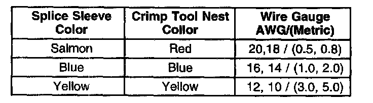 Crimp and Seal Splice Table: