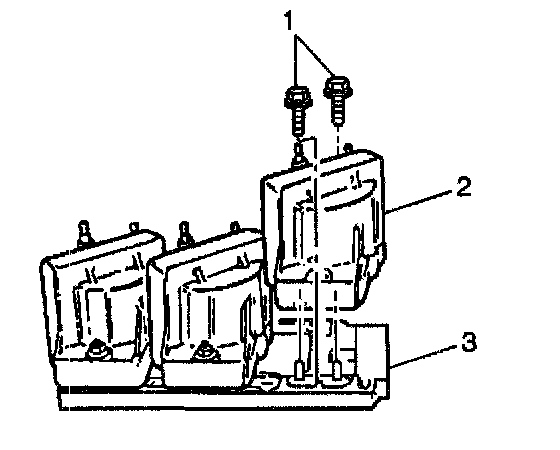 3. Remove the screws (1) securing the coil assemblies to the ignition control module.
