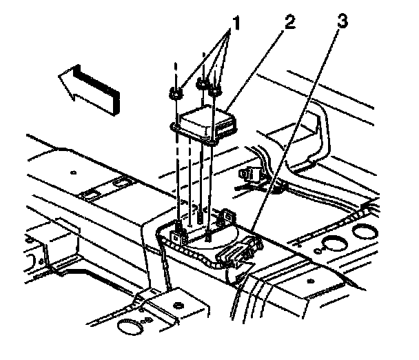 9. Remove the SDM (2) from the console floor (3).