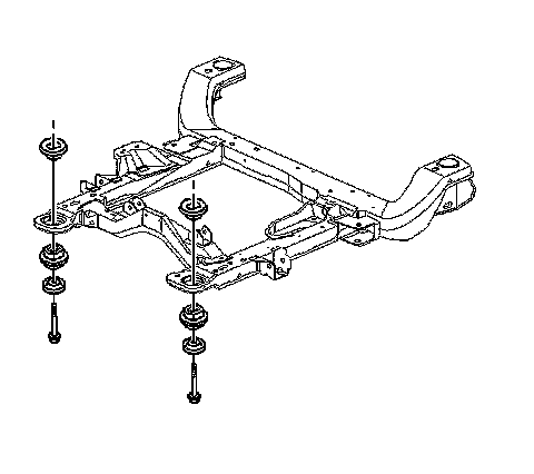 * The spacers, the upper insulator, the lower insulator, and the retainers. Refer to Drivetrain and Front Suspension Frame Front Insulator Replacement (Drivetrain and Front Suspension Frame Front Insulator Replacement) and to Drivetrain and Front Suspension Frame Rear Insulator Replacement (Drivetrain and Front Suspension Frame Rear Insulator Replacement)